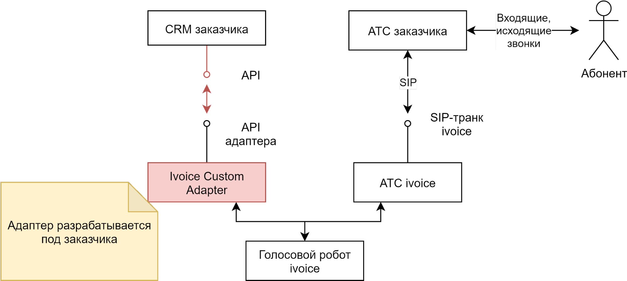Стандартная интеграция - заказчик подключается к АТС Ivoice