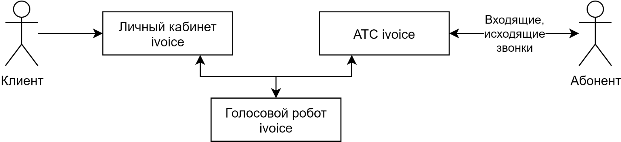 1. Личный кабинет IVOICE, телефония IVOICE; без интеграций с системами заказчика
